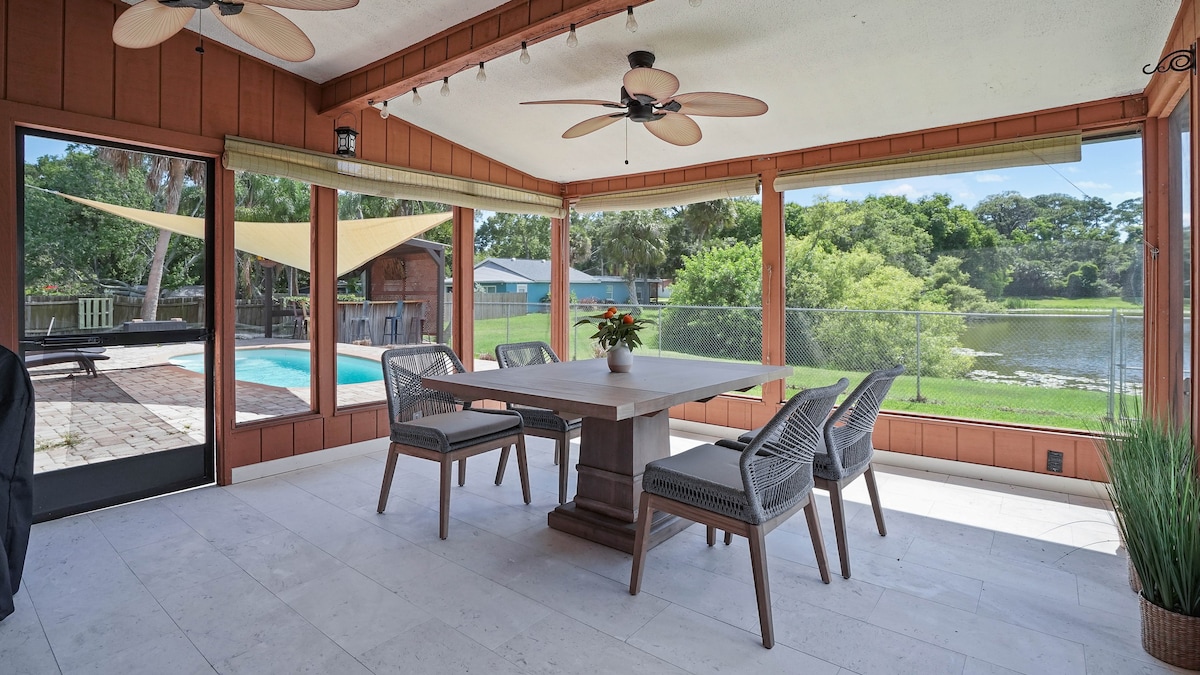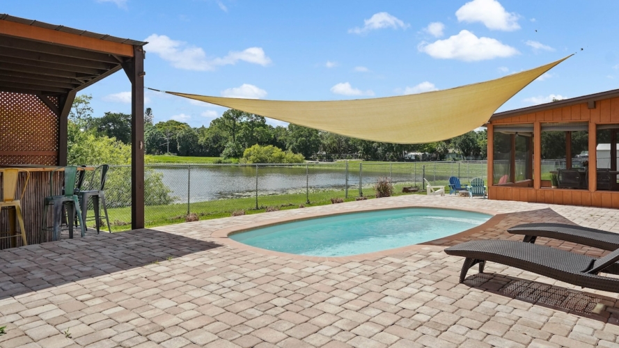 - Relaxing Poolside Retreat: Dive into the refreshing pool or lounge by the water, taking in the serene lake views that make every moment feel like a vacation. The fenced-in backyard is your private paradise, surrounded by lush greenery and a beautiful landscape.