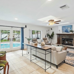 Just 10 minutes from Indian Rocks Beach, unveil the ultimate getaway at this stunning 3-bedroom pool home in Largo’s Plantation Palms! With 1,845 sq. ft. of beautifully designed space, this gem perfectly combines luxury and comfort. The updated kitchen flows seamlessly into an open living area, all illuminated by skylights that fill the home with warm, natural light.